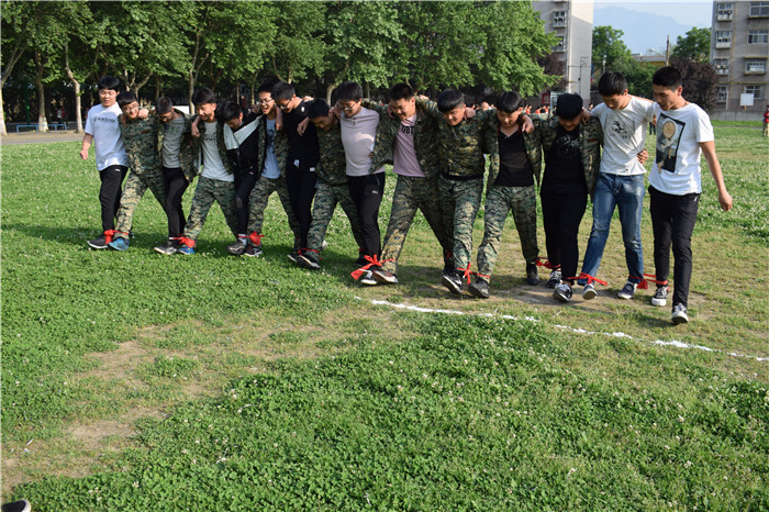 我们的女同学也不甘示弱,与男生一块肩搭肩,团结一致,脚踏实地往前走。同学们努力拼搏,我们的辅导员老师亲自指导,和同学们一起融入到活动中。