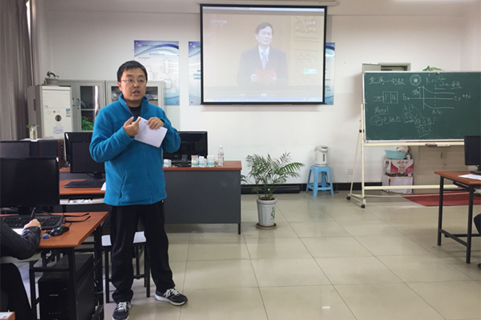 全体教师在8-503收看了十九届中共中央政治局常委同中外记者见面的视频,认真聆听了习近平总书记的重要讲话。到场人员纷纷表示,坚决拥护新一届党中央领导集体,坚决维护以习近平同志为核心的党中央权威和集中统一领导。伟大、光荣、正确的中国共产党风华正茂,将带领全党全国各族人民迈向中国特色社会主义新时代,迈步踏上实现中华民族伟大复兴的中国梦的伟大征程。
