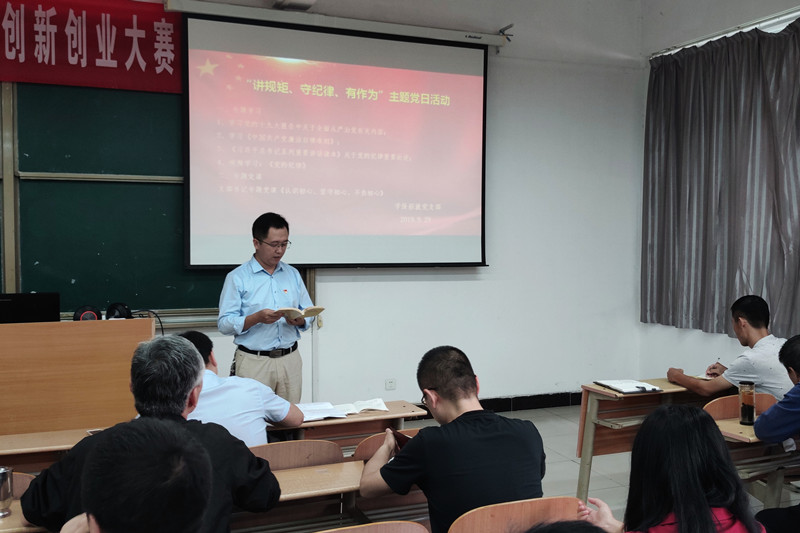 2019年9月29日下午,学保招就党支部开展了主题为“守纪律,讲规矩,有作为”的党日活动。主题党日活动分两个阶段进行。第一阶段,组织支部党员集中学习;第二阶段,党支部书记王牛俊同志为全体党员上专题党课。