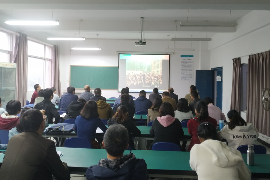 首先,全体教职工学习陕教工〔2019〕75 号文,向西北大学中亚考古队、西安交通大学网络化系统工程团队两个先进典型学习。并观看视频《习近平总书记与人民教师在一起》,近年来,习近平总书记考察、致信、座谈……一言一行,一字一句,浸润着总书记尊师重教之情。教师这个群体,习近平总书记一直惦念于心。杨晓平希望全体教职工能够把教书育人和自我修养结合起来,做到以德立身、以德立学、以德施教;能够“学为人师,行为世范,做学生健康成长的指导者和引路人”,“努力做教育改革的奋进者、教育扶贫的先行者、学生成长的引导者”。