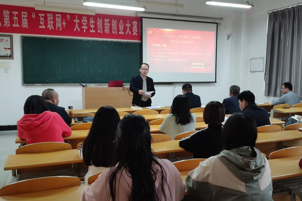 2019年10月17日下午,必威app安卓版无弹窗党委学团思政党支部在思政部办公室开展“不忘初心 牢记使命”主题学习,必威app安卓版无弹窗党委书记沈惠以及全体支部党员参加,会议由支部书记张静主持。