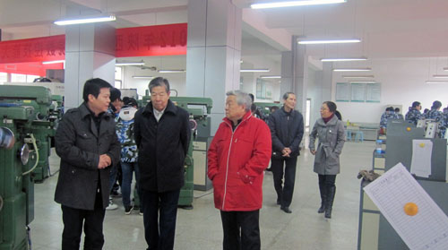 李松山理事长一行首先参观了学校机加工实训车间和数控车间,并与实习学生、指导教师进行了简短交流。汽车学院史朝辉院长介绍了学校基本情况与发展目标,模具教研室主任王晓梅汇报了我院模具专业情况及实践教学改革、校企合作上的做法和成绩,并表示将进一步依托陕西省模具工业协会这一平台,继续加大模具专业与陕西模具企业合作的力度。