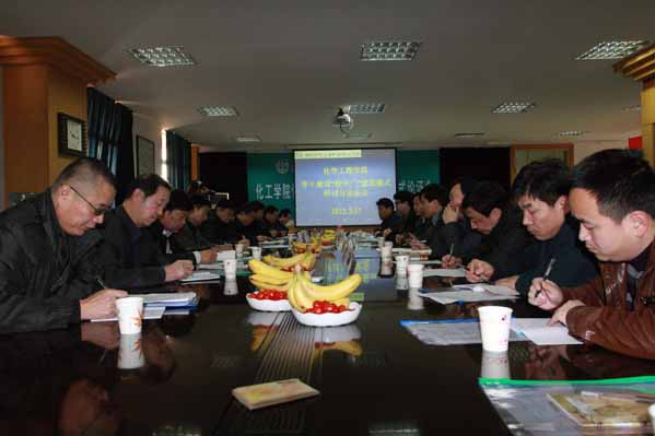 2012年3月17日化学工程学院在学院南校区信息楼会议室召开骨干院校建设“校中厂”建设模式论证会,邀请的会议专家有西安交通大学理曹瑞军教授、西安石油大学化学化工学院院长倪炳华教授、陕西石油化工研究院娄西中高工、陕西宝塔山油漆股份有限公司副总经理韩平印高工、西安惠安集团副总工艺师周龙民高工、西安惠安集团经营计划部部长韩聪智高工、西安惠凯新材料有限公司总经理 张国柱高工、西安垚森环境技术有限公司总经理陈慧利高工及中国化工报驻陕记者李军老师,学院出席会议的有学院党委书记张文斌、教学副院长刘敏涵、示范班主任董灵光、教务处处长全卫强、实践教学处处长张鑫、化学工程学院院长刘耀鹏及化学工程学院参与实验实训条件建设的部分教师。