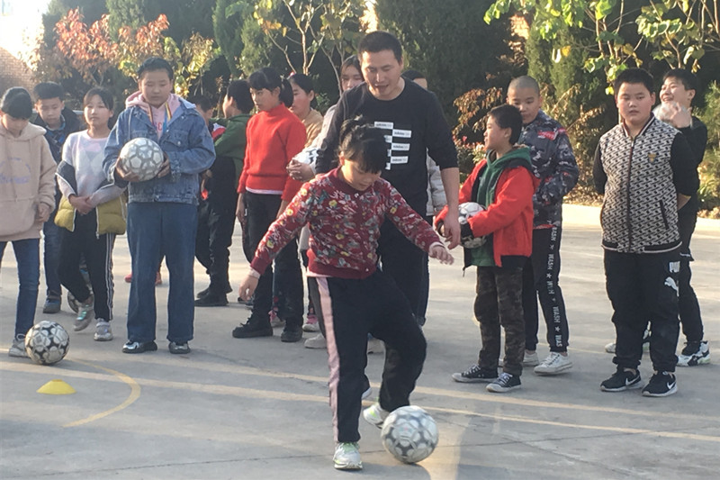 在智慧小课堂里,化工学院党总支书记孟龙教同学们如何准确的读记英文字母;闫博、张晗老师为同学们演示趣味化学实验,提高大家对科学学习的兴趣。同学们开心说:“化学真有意思”。在阳光小课堂,权华、郝励老师带领同学们一起踢足球,享受足球运动的激情与快乐……