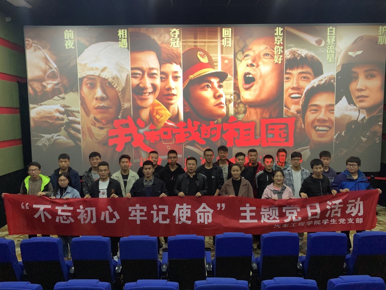 在中华人民共和国成立70周年之际,为进一步做好“不忘初心、牢记使命”主题教育,弘扬爱国主义精神、激发爱党爱国热情,10月17日下午5:30,汽车工程学院学生党支部组织在校党员观看爱国主题电影《我和我的祖国》。