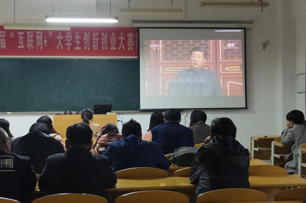 会议首先学习了习近平在庆祝中华人民共和国成立70周年大会上的讲话。总书记深情回望70年前新中国成立这一伟大事件,赞扬70年来全国各族人民取得的令世界刮目相看的伟大成就,宣示前进征程上不断创造新的历史伟业的坚强决心和坚定信心,号召全党全军全国各族人民更加紧密地团结起来,不忘初心、牢记使命,继续把我们的人民共和国巩固好、发展好,继续为实现“两个一百年”奋斗目标、实现中华民族伟大复兴的中国梦而努力奋斗。