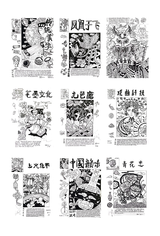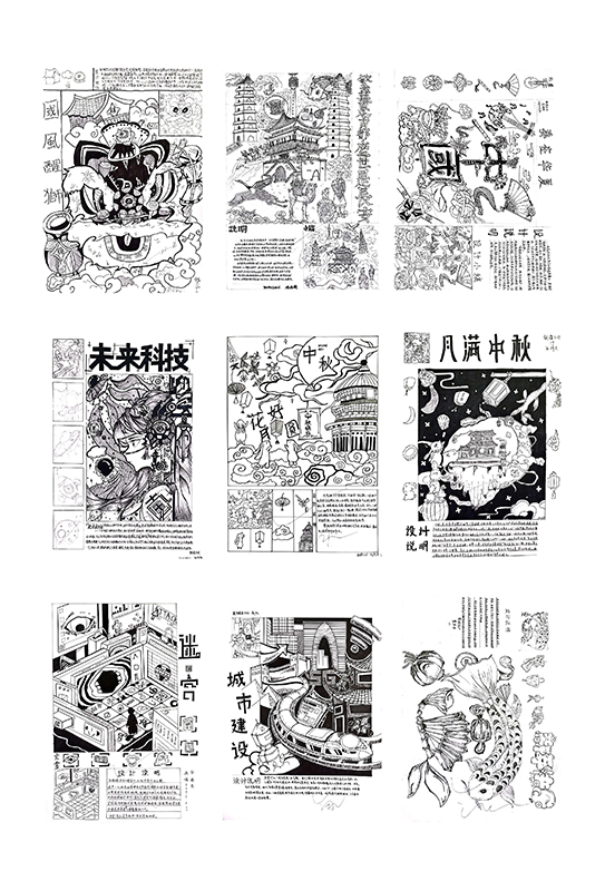 调研结束后,同学们将调研和写生成果进行了整理,以独特视角和创意将调研中看到的传统元素融入到了现代设计中。