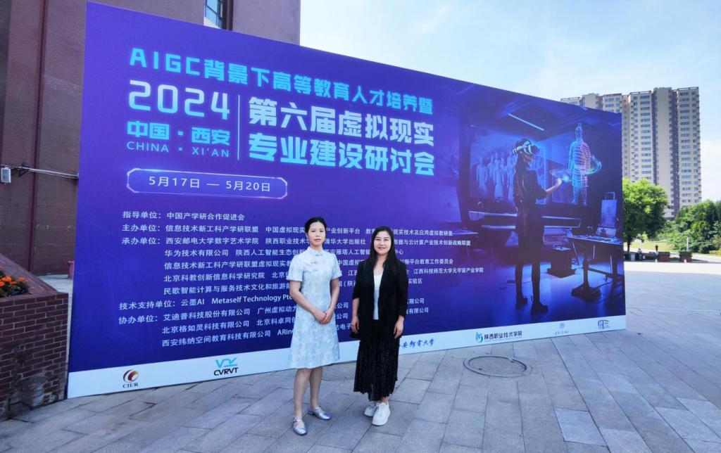 5月18日,2024年AIGC技术背景下高等教育人才培养暨虚拟现实专业建设研讨会在西安邮电大学举办,来自国内产业界、互联网企业、高校及科研机构等专家代表及高校教师代表近200人参加会议。我校艺术与设计学院受邀参会。