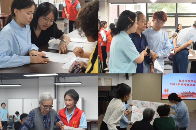最后志愿者们组织老人进行健康评估,一组学生评估其一般健康状况,提醒老人正常值及生活注意事项。二组学生进行认知、焦虑、跌倒等评估,为老人提供个性化健康指导与心理疏导。三组学生向老人展示健康海报,因其主题明确、色彩鲜艳、讲解清晰,深受老人们的好评。这项综合评估为老人们提供了全面的健康服务,得到了广泛的认可。