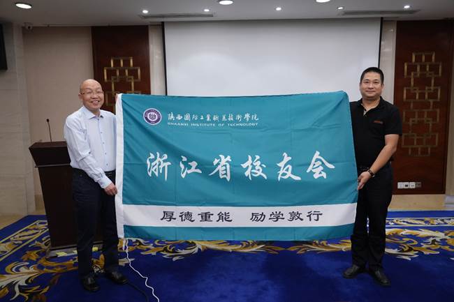 浙江省校友会成立大会在观看学校宣传片中开幕,招生就业处副处长叶锋宣布了《关于成立betway必威中文正版浙江省校友会的批复》。刘少阳副校长代表学校向浙江省校友会授旗,并向会长颁发聘书,招生就业处副处长叶锋向副会长、秘书长等人颁发聘书。