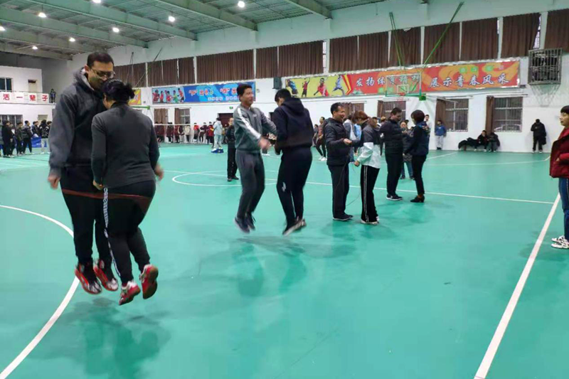 为响应“全民健身”号召,丰富教职工文体生活,鼓励教职工积极参加体育运动,增强个人体质,以健康的体魄和饱满的精神投入到本职工作,本着“锻炼为主,重在参与”的原则,11月24日下午4点30分,基础分会教职员工在我院大学生活动中心组织开展趣味跳绳比赛活动。