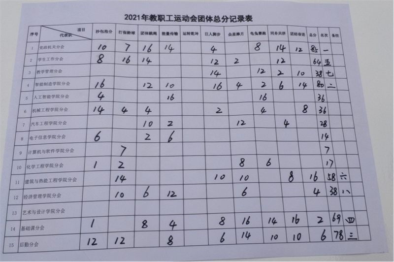 2021年5月12日至2021年5月14日,基础课分会积极参与校教职工趣味运动会,那三天阳光明媚,天高云淡,恰是运动锻炼的好时期,各位老师团结协作,共同努力,不仅愉悦了心情,活动了身体,融洽了关系,另外也荣获三等奖。