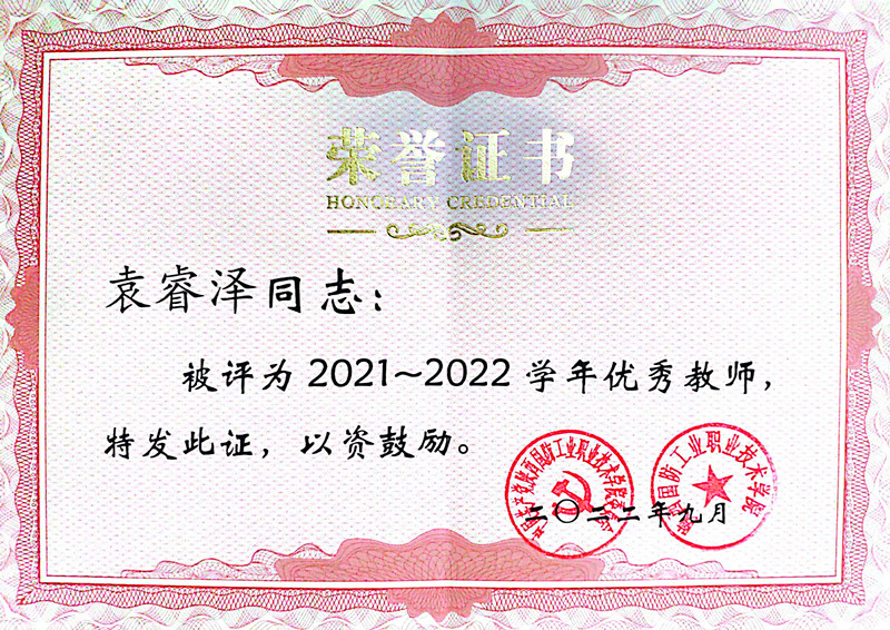 基础课部刘冰尧、黄立群、袁睿泽等3位老师获2022年“优秀教师”荣誉称号,刘冰尧获2022年“十佳教师”荣誉称号。