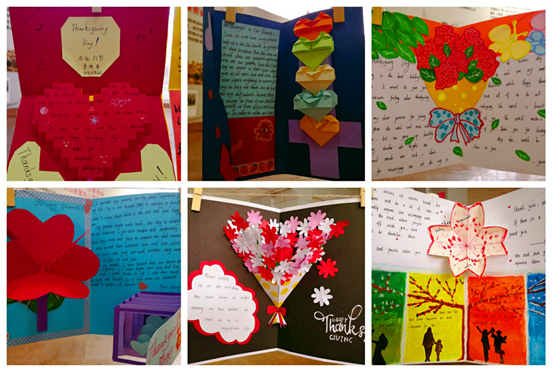 为履行立德树人使命,践行个性教育理念,同时也为我院学生提供自我展示平台和提升创新能力的机会。恰逢感恩节即将到来之际,由基础课部语言教研室主办、英语协会协办的英语校园文化月系列活动之二:“英文贺卡制作大赛”于2020年11月25日-26日在图书馆一楼圆满举办。本次活动旨在帮助学生发现生活中的真善美,学会珍惜,懂得感恩,同时培养学生应用英语表达真情实感的能力。