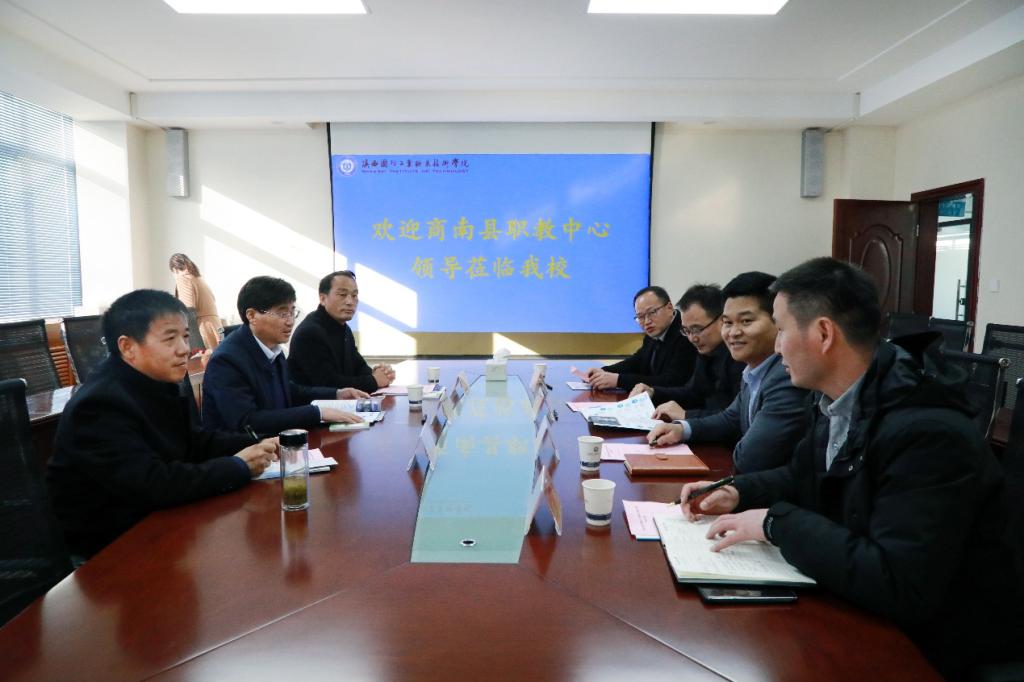 12月1日上午,商南县职业技术教育中心主任田明林、商南县职业技术教育中心副主任冀双全、商南县高级职业中学校长黄开忠三人来我校考察交流。我校副校长张永军代表学校热情接待了来访人员,基础课部主任杨文革、基础课党总支书记权华、招生就业处副处长叶锋参加了此次交流。