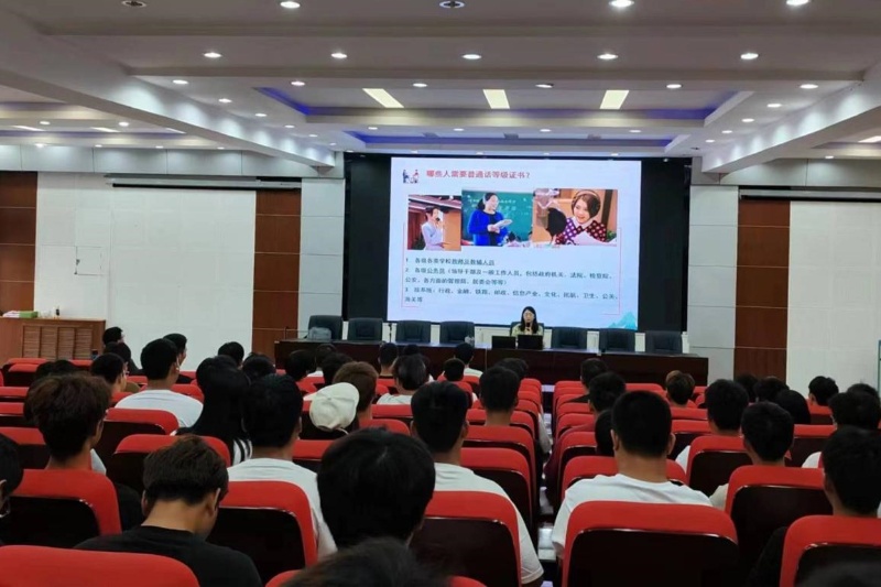 2024年9月18日下午我校基础课部教师刘冰尧在学校树人报告厅开展了普通话推广和培训活动,参加学生200余人。