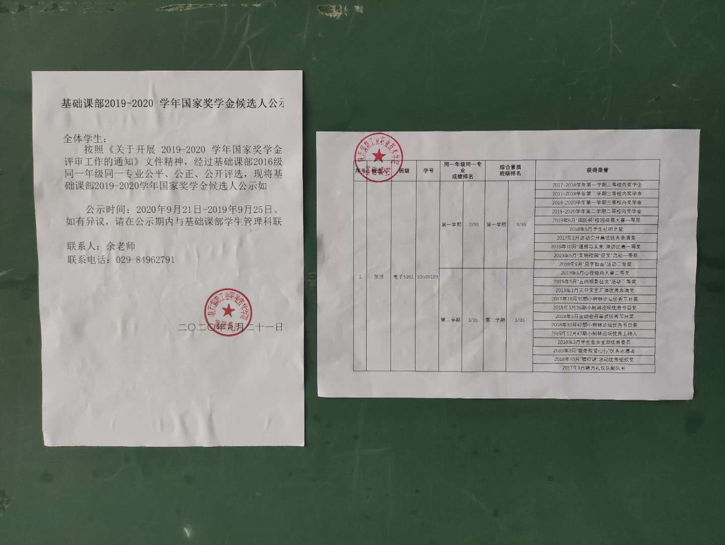 公示时间:2020年9月21日-2019年9月25日。如有异议,请在公示期内与基础课部学生管理科联系。