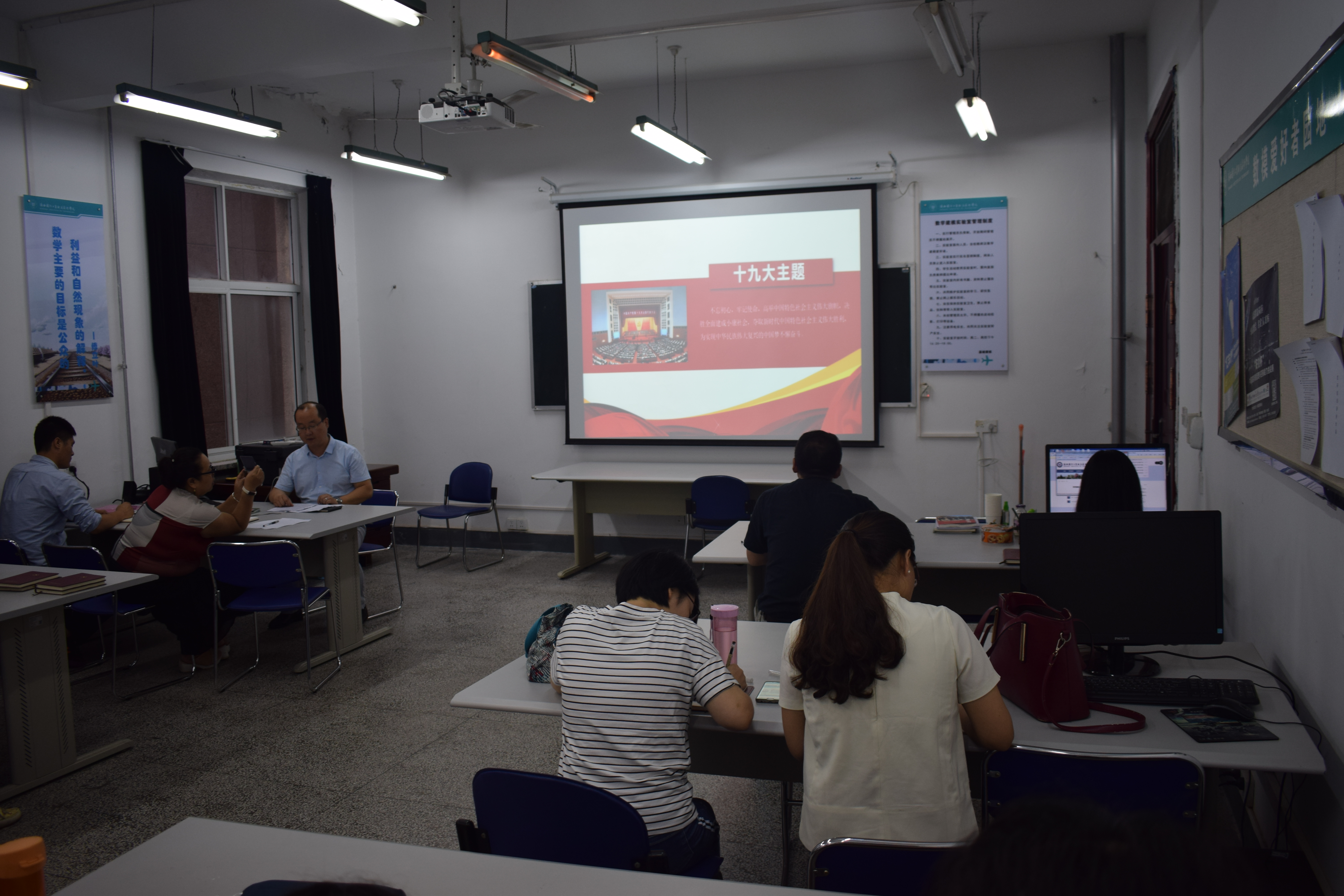 7月4日下午基础课党总支在南校区教学3楼205会议室组织全体教职工党员开展“不忘初心、牢记使命”——做新时代合格党员专题党课学习活动,此次学习活动由基础课党总支书记吴玮玮主持。