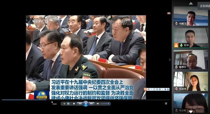 按照陕国职案改组〔20203号文件《关于切实做好肃清赵正永流毒和以案促改专题学习教育工作安排的通知》要求,基础课党总支组织全体党员于202084日下午3:00在线上开展第一次《深入学习贯彻习近平总书记关于全面从严治党的重要论述》主题学习,会议由党总支书记权华主持。