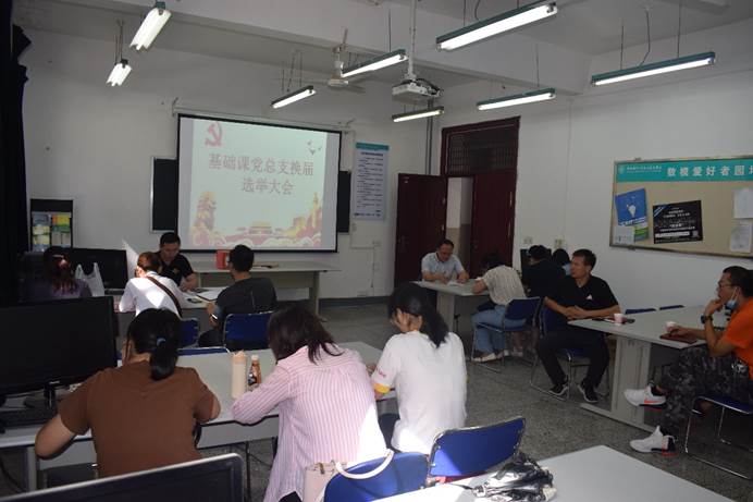基础课党总支书记权华向大会报告了党员出席情况并作上届党总支委员会工作报告,由基础课党总支副书记杨文革宣读《基础课党总支换届选举办法》。之后根据大会选举办法由监票人主持选举工作,进行无记名投票,由权华宣布新一届党总支委员会委员当选结果。
