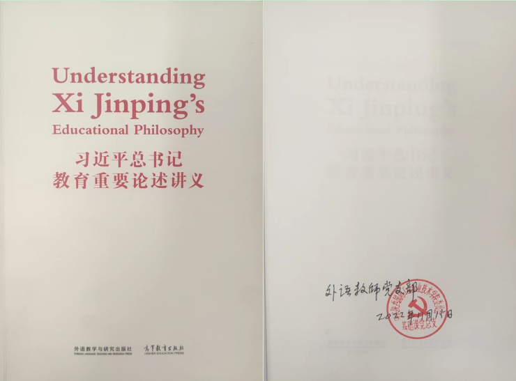本次为全体党员购买了《习近平总书记教育重要论述讲义》中英文版书籍,并发放到每一位党员手中。本书共包含九讲,一讲坚持党对教育事业的全面领导;二讲坚持把立德树人作为根本任务;三讲坚持优先发展教育事业;四讲坚持社会主义办学方向;五讲坚持扎根中国大地办教育;六讲坚持以人民为中心发展教育;七讲坚持深化教育改革创新;八讲坚持把服务中华民族伟大复兴作为教育的重要使命;九讲坚持把教师队伍建设作为基础工作。“习近平总书记教育重要论述”是习近平新时代中国特色社会主义思想的重要组成部分,标志着我们党对教育规律的认识达到了新高度,为新时代教育改革发展提供了根本遵循。