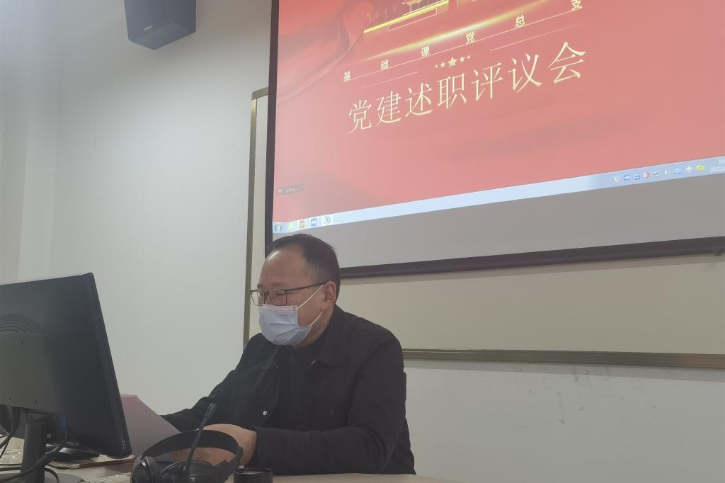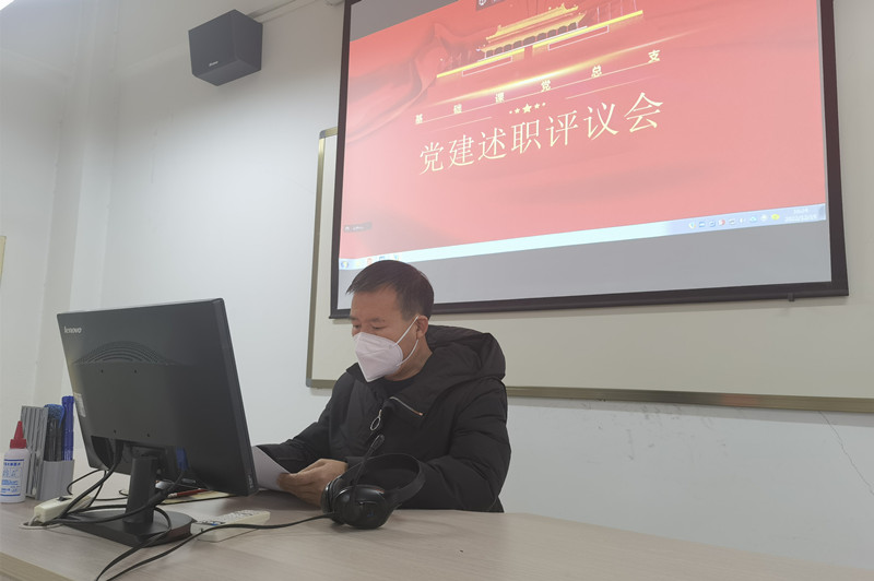 三位支部书记根据贯彻落实全国、全省组织部长会议精神、基层党建工作重点任务推进会部署要求和《2022 年全省教育系统基层党建重点任务》等方面对支部年度工作分别进行述职报告,基础课党总支根据文件要求对各支部进行评议。