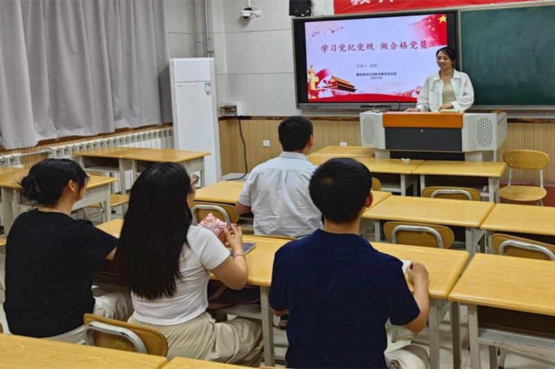 数学教师党支部开展“学党规党纪,做合格党员”主题党课活动。党规党纪的学习教育是加强党的纪律建设、推动全面从严治党的重要举措。为响应党中央号召,进一步深化党纪学习教育,提高党员的纪律意识和党性修养。2024年6月25日下午,基础课党总支数学教师党支部党员代表参加“学习党规党纪,做合格党员”主题党课。党课由数学教师党支部书记赵兹同志主持,通过学习旨在引导广大党员深入学习党的纪律规定,准确把握党纪党规的精神实质,自觉将党纪党规内化于心、外化于行。本次党课重点解读了新修订的条例内容,强调了严明政治纪律和政治规矩,确保党员们在思想上和行动上与党中央保持高度一致。通过本次党课学习,旨在增强党员的纪律意识,提高党性修养,确保党员在任何时候和任何情况下都能够严格遵守党的纪律,发挥先锋模范作用,以实际行动践行党的宗旨,服务人民。参会党员同志明确表示,要时刻保持清醒头脑,严于律己,以身作则,争做新时代的合格党员。