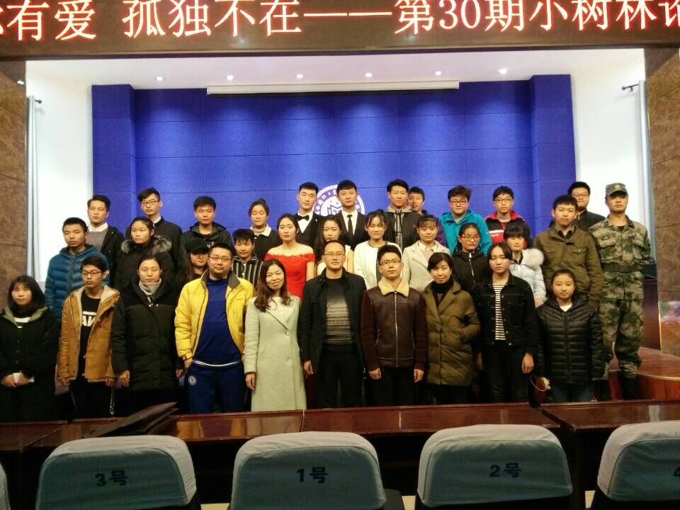 2016年12月7日下午4:30,由基础课部承办的第30期小树林论坛“有你有爱 孤独不在”,在我校南区报告厅圆满举办。基础课党总支书记杨文革老师、学保处杨永春老师以及基础课部全体辅导员、教官和350多名学生参加了本次活动。