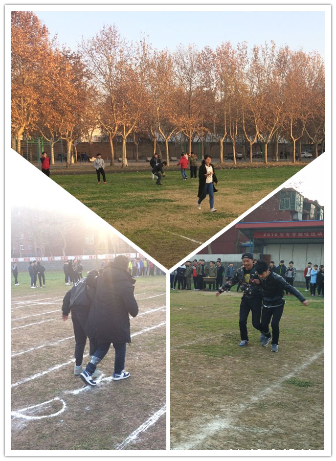 ——第4届趣味运动会顺利开展。2016年12月6日,基础课部在南区大操场举行了为期3天的第四届趣味运动会。本次运动会以“团结、合作、拼搏、竞争”为主题,共有514、515、516三个年级参加。整个运动会期间,学生会认真组织学生参赛、观看比赛,喝彩,秩序井然,气氛相当热烈。赛场上,全体运动员继承了“友谊第一、比赛第二”的优良传统,发扬了“更高、更快、更强”的运动精神。各裁判员忠于职守、在运动场上坚持公平、公正的原则,保证了运动会的顺利进行。经过三天紧张的激烈角逐,趣味运动会取得圆满成功。