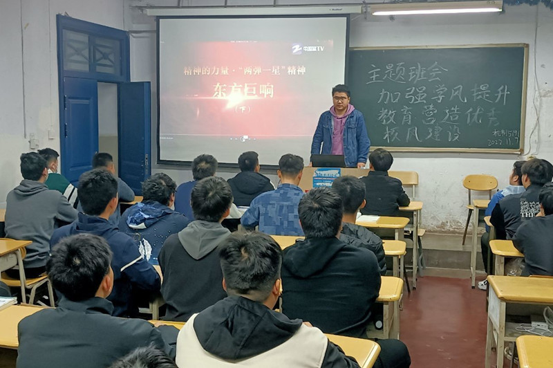 德育为首,育人为先,各班级或进行理论学习,或通过视频材料学习黄崖洞精神、“两弹一星”精神、军工精神,鼓励同学们自觉树立“学习是第一要义”的意识,本着艰苦奋斗、刻苦努力的学习作风,提高自身文化素质修养。