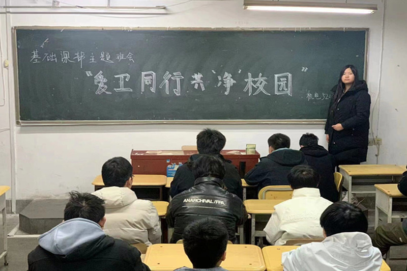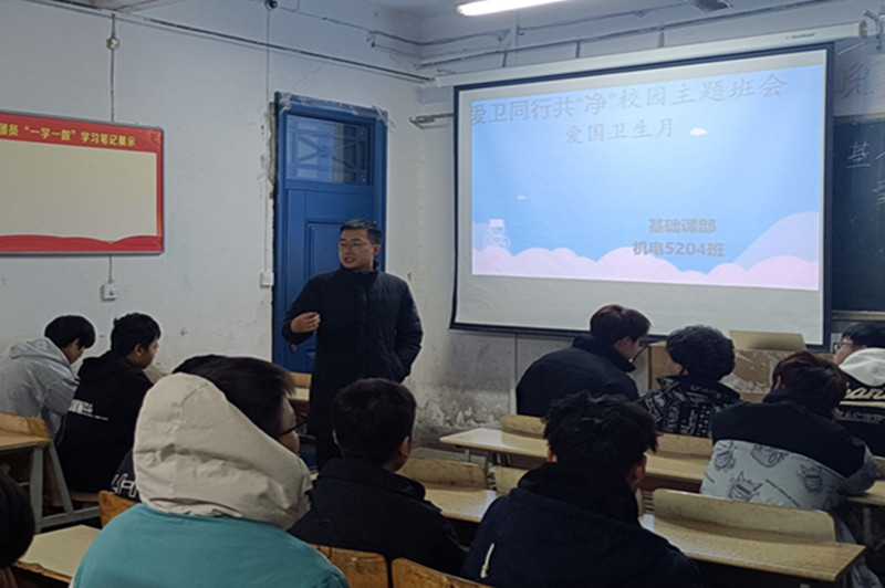 开展“爱卫同行,共‘净’校园”主题班会。基础课部各班级积极动员,通过宣传学习《爱国卫生条例》和爱国卫生运动的由来与发展,鼓励倡导学生积极参与到新时代爱国卫生运动的热潮中来,以实际行动清洁校园环境,革除不良生活陋习,自觉养成文明健康生活方式。