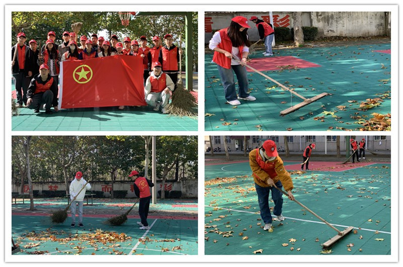 志愿服务送温暖活动。为了培养学生崇尚劳动、乐于奉献的意识,引导学生树立“保护环境,人人有责”的社会责任感,基础课部组织开展清扫落叶志愿服务活动,通过志愿服务弘扬爱国主义精神,展现基础大学生的青春风采。