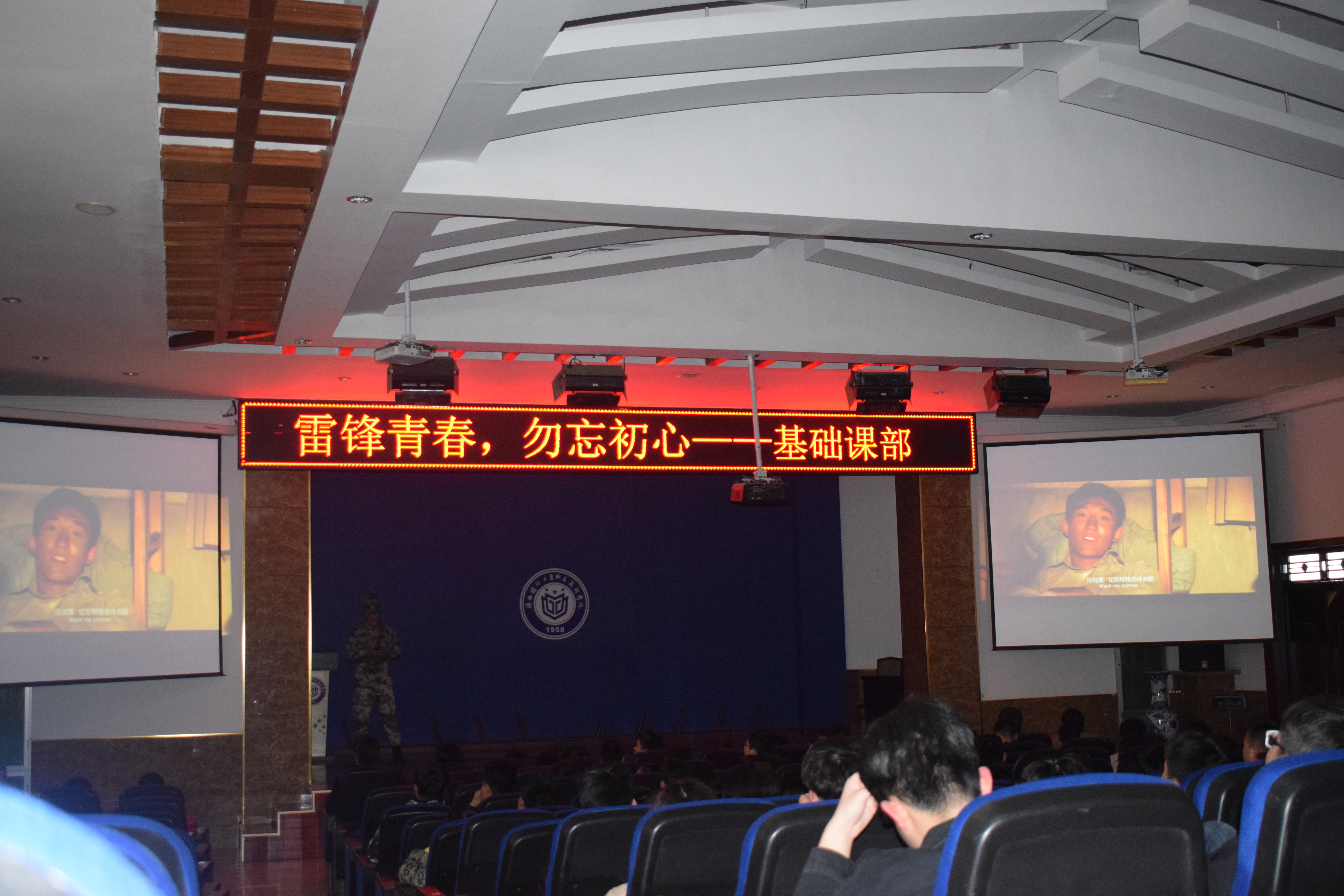 承载着社会主流道德价值取向的雷锋精神,已经成为了中华民族继续前行的动力之源,雷锋同志短暂的二十二个春秋影响了几代人的记忆。为传承雷锋精神,激励青年大学生树立坚定的理想信念,2019年3月5日下午4:30,基础课部全体团员干部,学生会干部在报告厅观看影片《青春雷锋》。