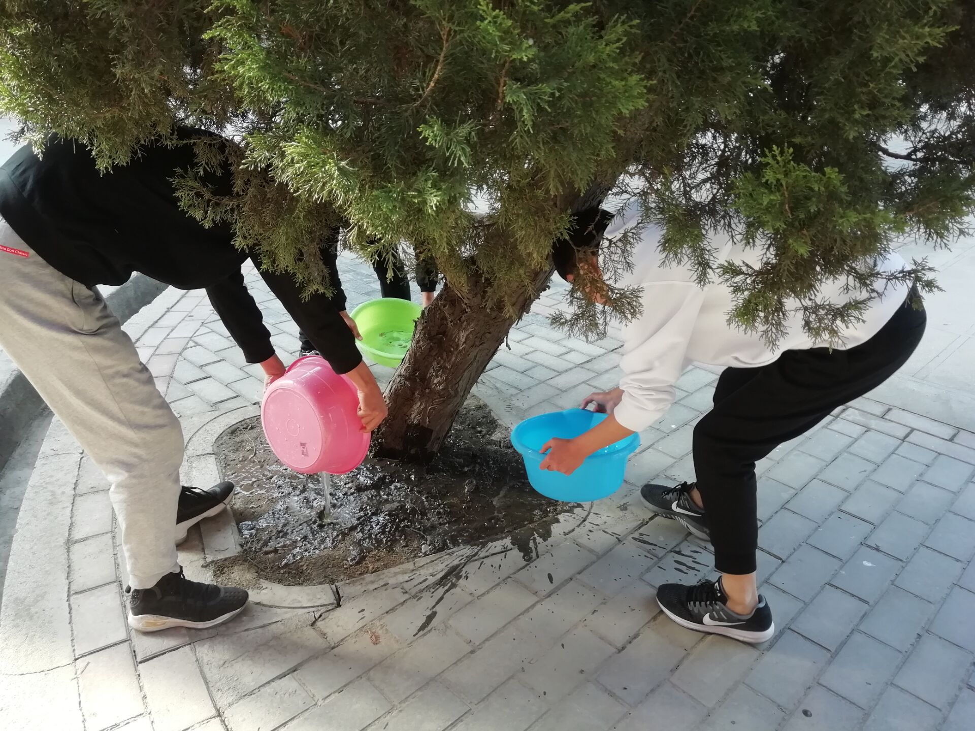 在我国第41个植树节来临之际,基础课部广大团员干部和入党积极分子们于3月12日下午4:30手持水盆和清理工具,来到校园小树林和教学楼下为树木浇水,清理树下垃圾。同学们分工明确,整个活动现场大家互帮互助,气氛活跃,充分享受着植树节活动带来的乐趣。