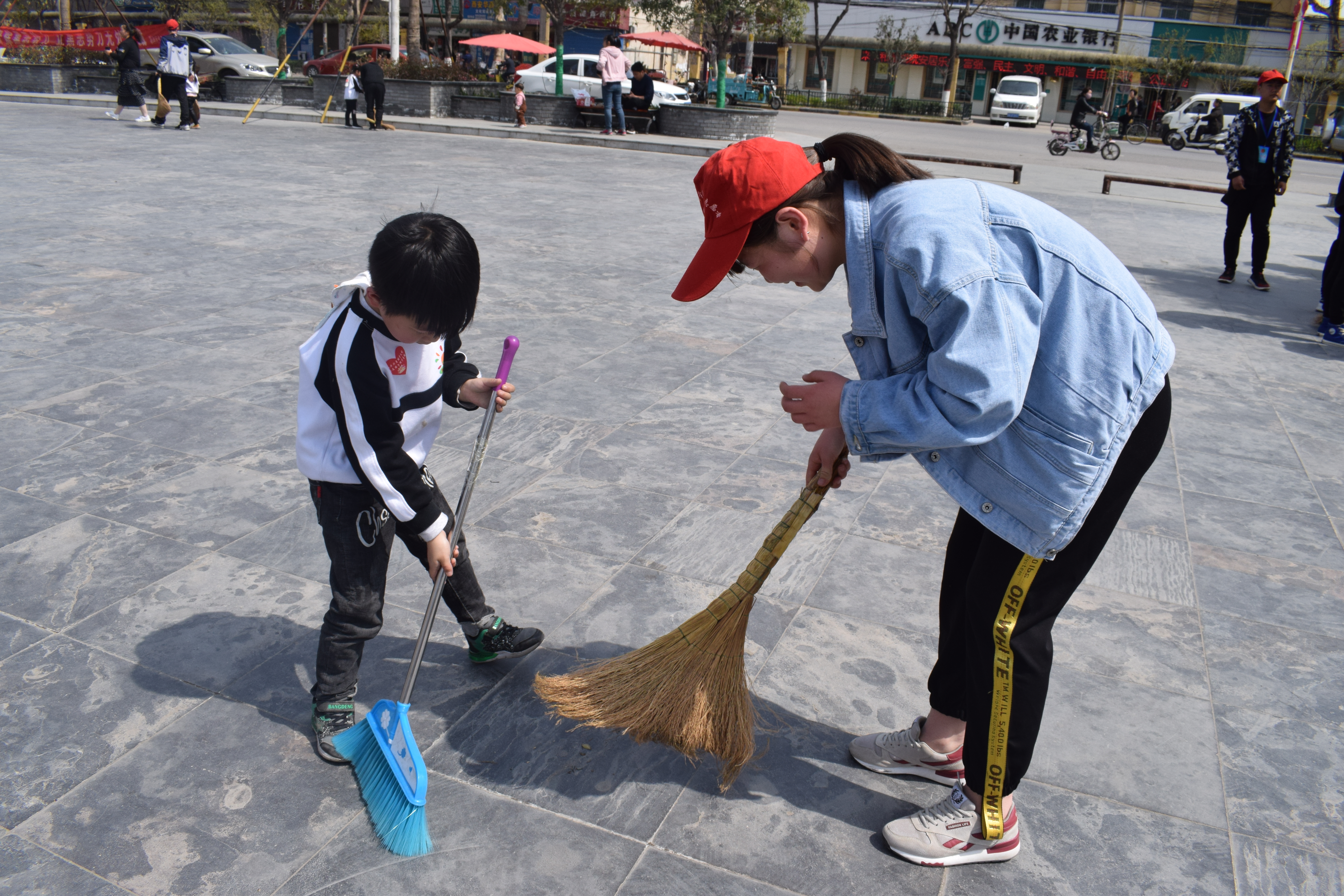 基础课部各班志愿者首先到达惠安幼儿园,与幼儿园小朋友进行亲切互动,在幼儿园老师的安排下,小朋友们手拉手一起前往文化宫广场清扫卫生。在大手拉小手的活动过程中,小朋友们在基础课部学生的带领下,一起拿着清扫工具齐心协力打扫文化宫卫生,不时发出欢乐爽朗的笑容。