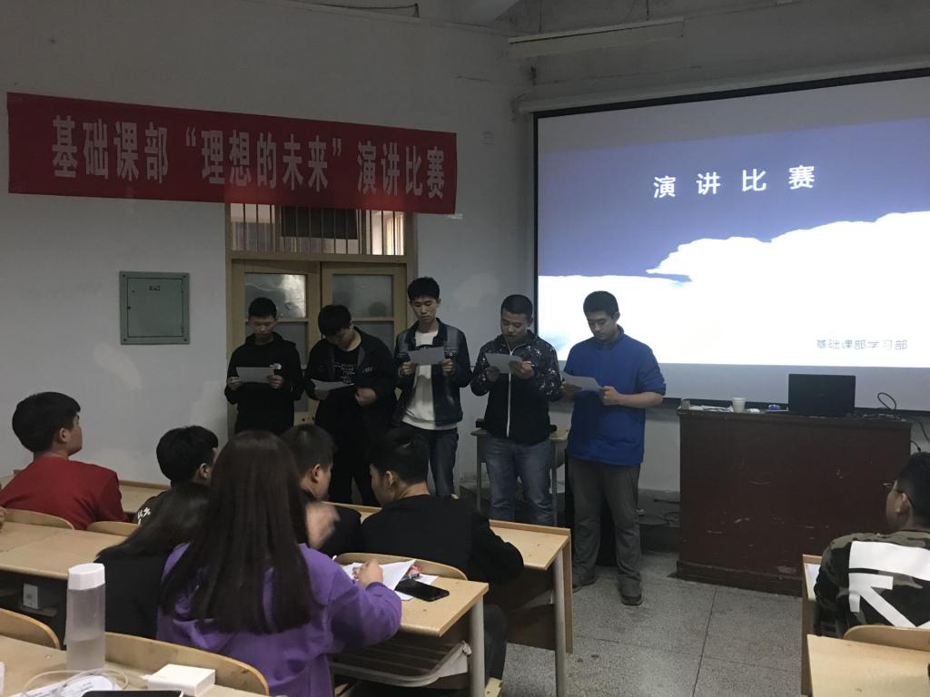 为了让同学们对“四有青年”有一个更深刻而准确的认识,也为了让更多的人体会到演讲的魅力从而丰富大学生的生活,同时为学生提供一个互相交流切磋演讲技术、展现演讲才能的平台,基础课部于2019年10月16日下午举办以“理想的未来”为主题的演讲比赛。