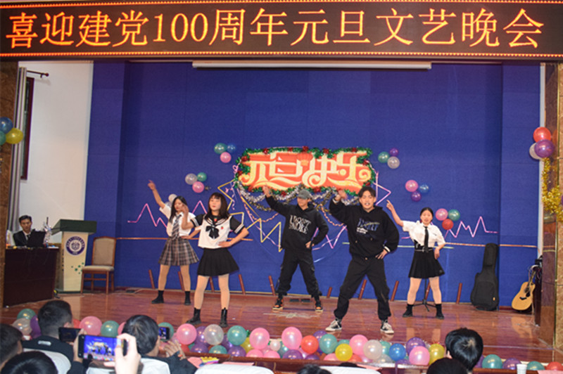 一百周年征程风雨兼程,一百周年征程金光灿烂,为庆祝2021年中国共产党成立100周年,为了喜迎元旦,丰富校园文化生活,更好的向广大师生展示基础魅力风采,促进基础课部朝向更蓬勃、更缤纷、更光明的方向发展。基础课部于2020年12月24日晚7:30在南校区报告厅举办《喜迎建党100周年元旦文艺晚会》,出席本次晚会的嘉宾有南校区综合办公室仝荣才老师、基础课党总支书记权华老师、学生干事余腾飞老师、分会委员袁睿泽老师以及基础课部全体辅导员老师。