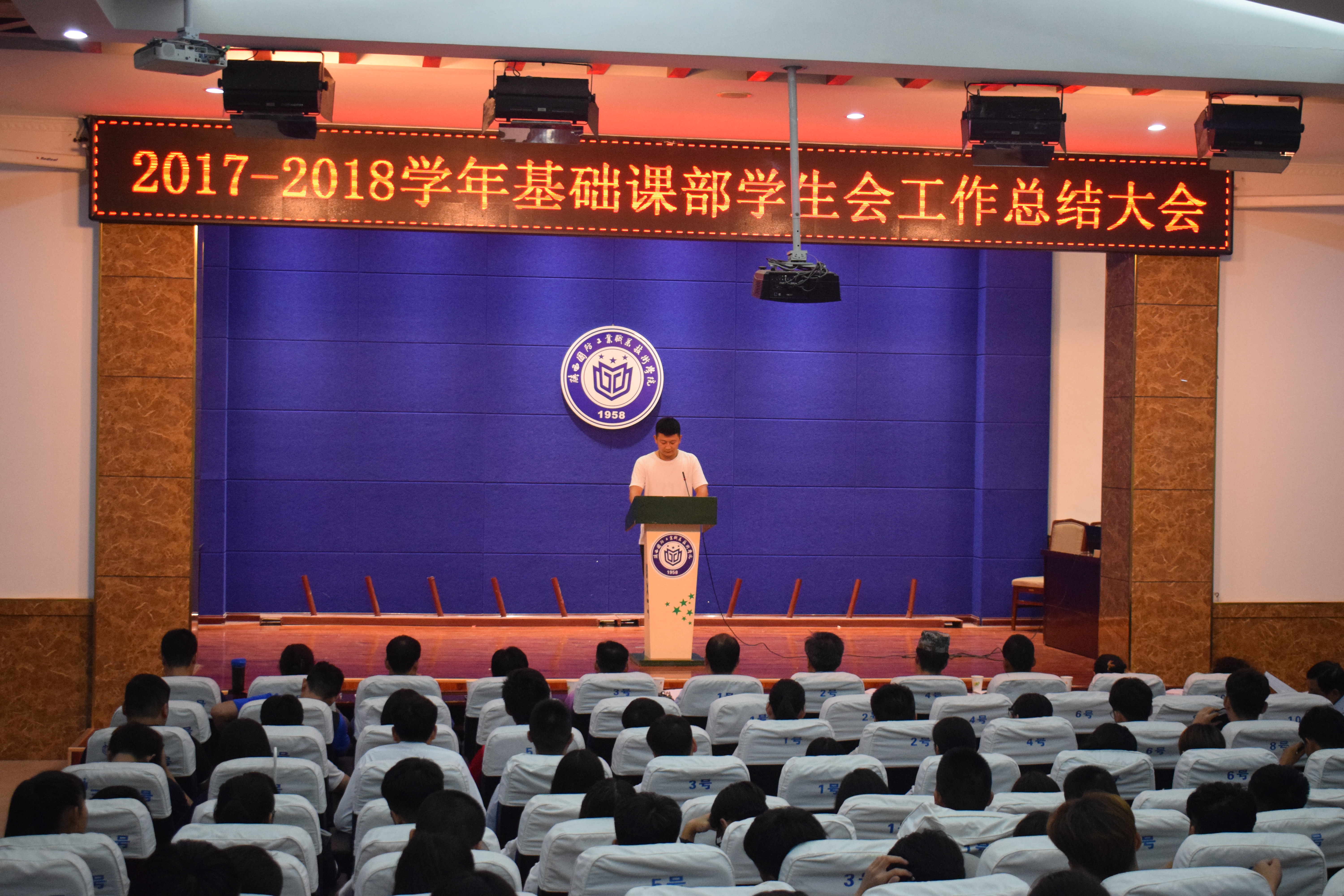 7月3日下午4:30分,基础课部学生会工作总结大会在南区信息楼报告厅圆满举行。基础课党总支书记吴玮玮老师、学生党支部书记杨论、全体辅导员老师以及学生会全体成员出席了此次大会。