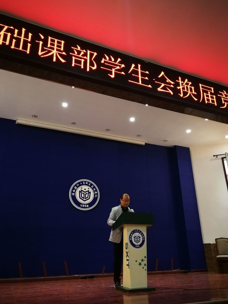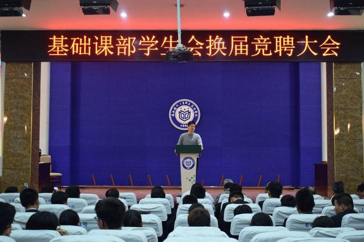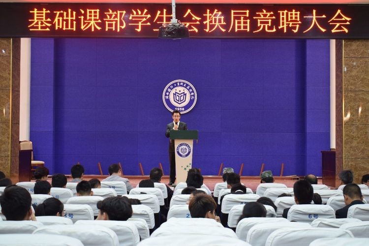 基础课部学生会秉承不忘初心、继往开来的宗旨,为吸纳优秀学生干部,为学生会注入新鲜血液,不断提升学生会的组织管理能力,2018年10月10日下午4:30在南区报告厅举办学生会换届竞聘大会。参加本次活动的有:基础课党总支书记吴玮玮老师,学生科科长杨论老师,全体辅导员老师以及教官。