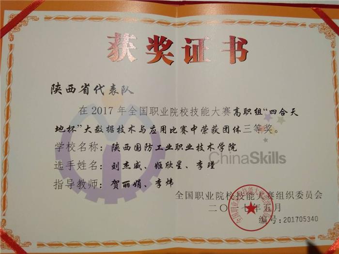 我校喜获2017年国赛大数据技术与应用赛项三等奖