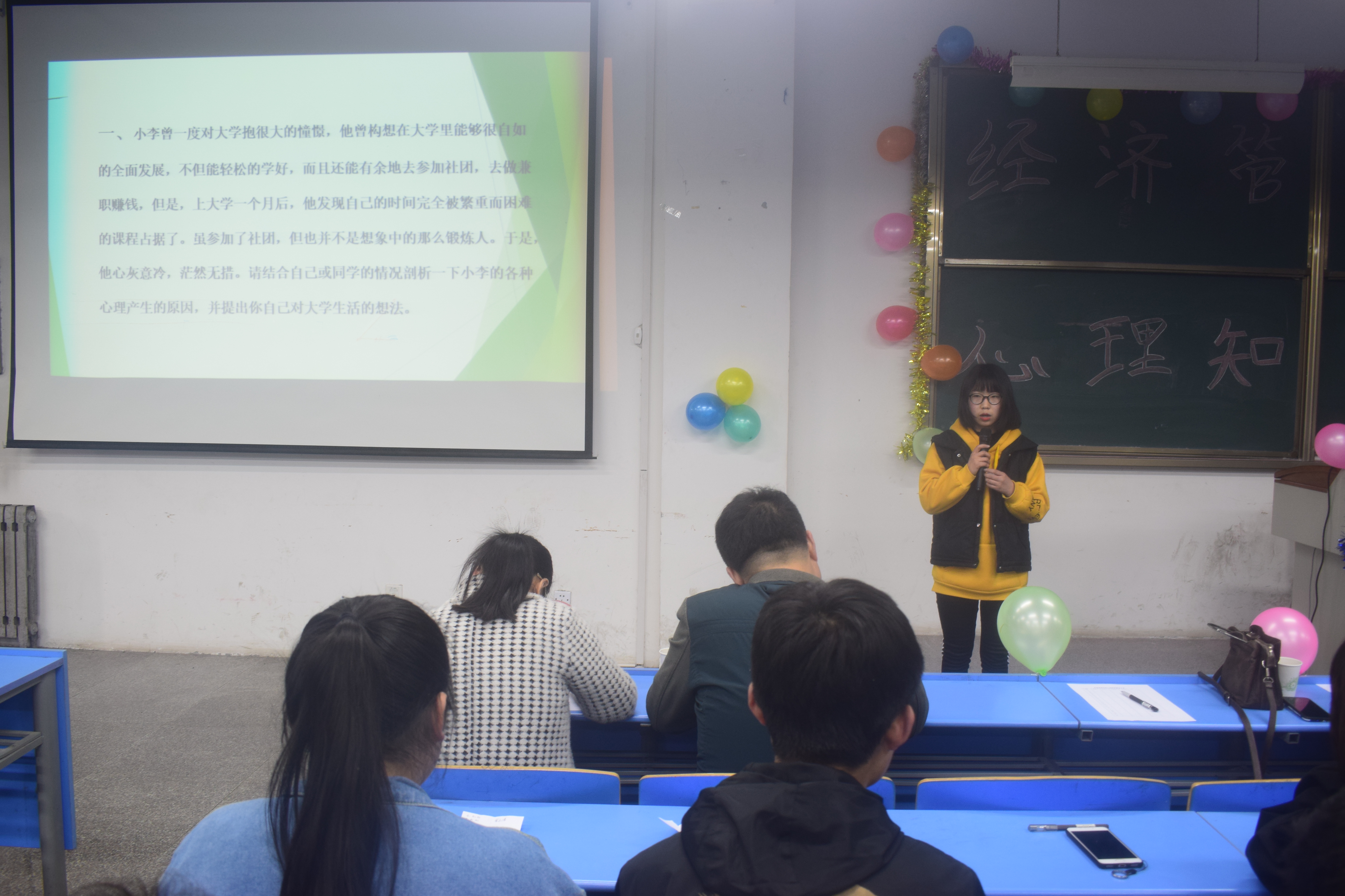 为使学生进一步增强对心理知识的了解、强化心理健康的重要性,提高学生心理调适能力,营造追求心理健康的良好氛围。经济管理学院于2019年3月21日16:30在3-129教室举办“心理知识辩论赛”活动。出席本次活动的有闫召应老师、王烨老师以及各班辅导员老师和各班参加比赛的学生。