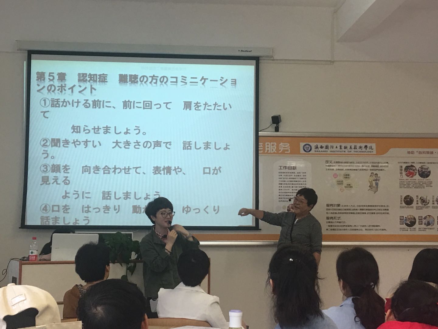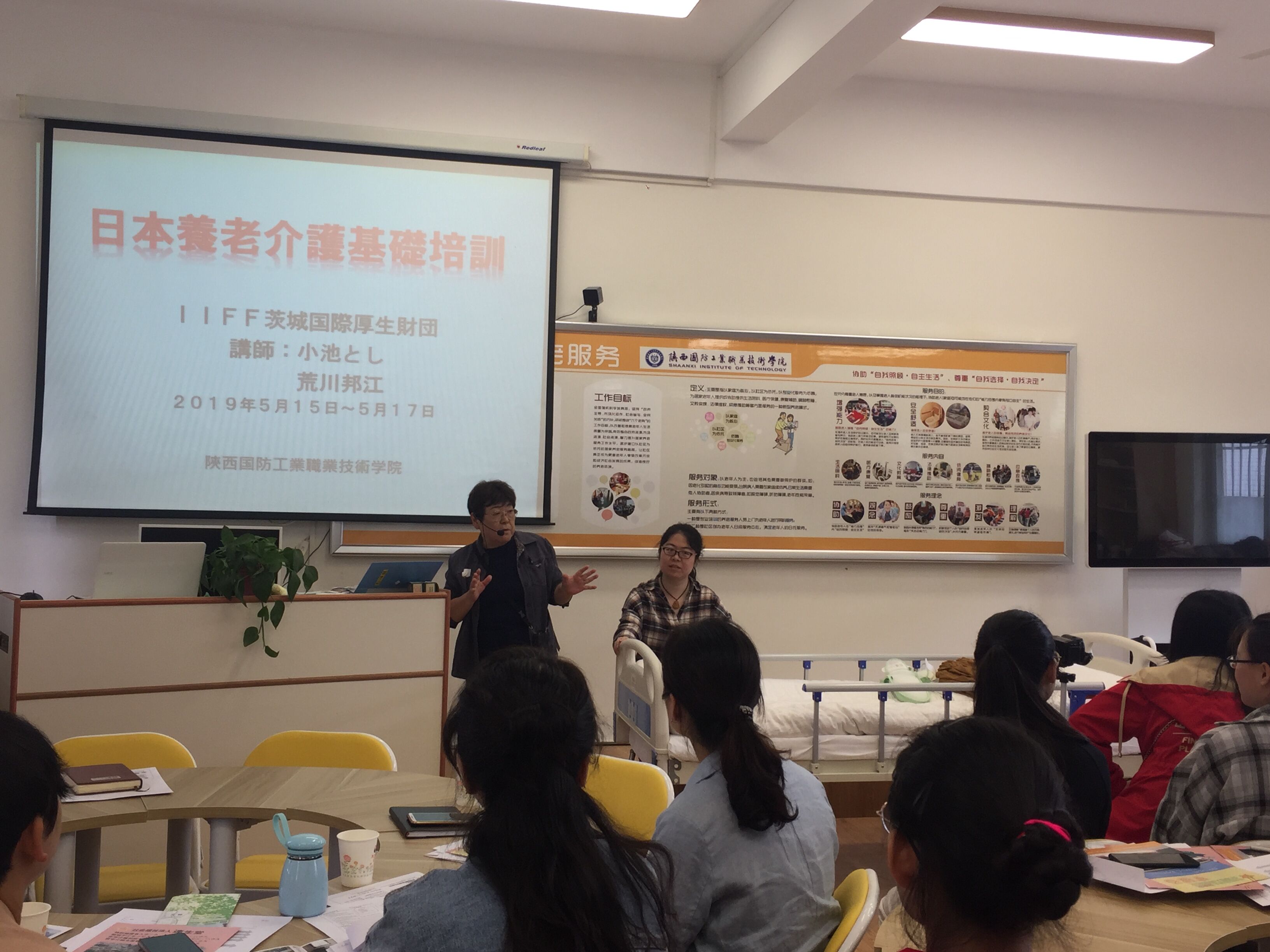 5月15日至17日,我校聘请的两位客座教授—社会福祉法人达生堂副理事荒川邦江女士和医疗法人达生堂城西病院顾问小池とし女士在我校老年服务与管理专业实训室对我校老年服务与管理专业师生及养老机构人员进行了关于“日本养老介护基础”的培训。本次培训得到了陕西汉唐兴业实业有限责任公司的大力支持和帮助。