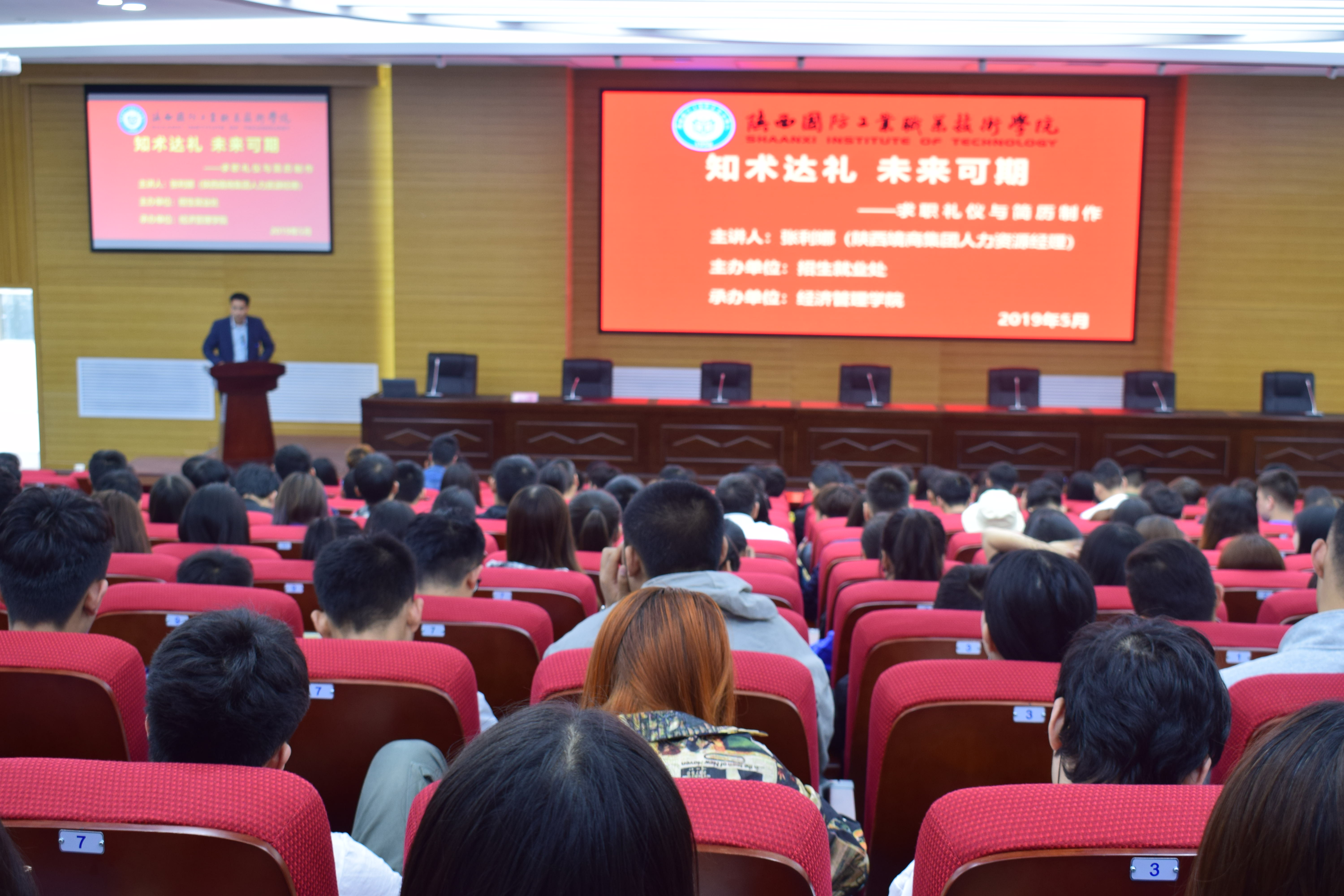 2019年5月28日下午4:30,经济管理学院邀请陕西境商集团人力资源部经理张利娜女士在教四报告厅举办以“知书达理,未来可期”为主题报告,经济管理学院王占祥书记、闫应召老师、刘杨老师、王潇老师以及面临求职的大二学生参加了本次报告会。