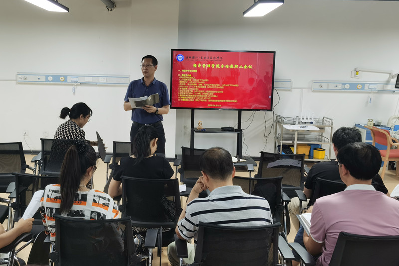 为深入贯彻落实学校工作部署会议安排,6月16日,我院在博弈楼409召开教师大会,总结本学期教学工作开展情况,安排部署学期末教育教学相关工作。副院长王珊珊主持会议,院长严长远、党总支书记王文雅及经济管理学院全体教师参加会议。
