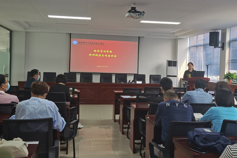 9月13日下午,经济管理学院在图书馆4楼宣讲厅召开科研诚信专项教育暨科研工作专题培训会,特邀科研处处长高葛教授做专题报告,会议由王珊珊副院长主持,全体专兼职教师参加。