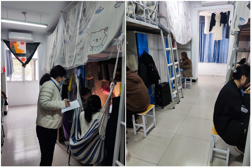 检查小组首先深入学生宿舍、腾讯会议等教学一线,详细了解线上教学情况、校园网络、学生线上学习条件等具体情况,收集和掌握学生对于线上课程的意见和建议,帮助学生正确认识线上学习的重要性,并协同学生管理部门形成学风建设的合力,鼓励师生克服困难,共同开展好线上教学,争取顺利完成教学任务。随后,检查组以实地入室走访查看的形式,先后对现代物流管理实训室、会计实训室、高乘实训室、商务实训室、智慧健康养老服务实训基地等多个实验实训场所进行了全面检查。着重检查实验室门锁门窗是否有松动、破损;电源电线是否有老化、裸露;设备仪器、防火防爆设施维护及运行情况是否良好;实验室人员管理以及实验用品购买、储存、领用、废弃物处置等环节安全管理制度落实情况。