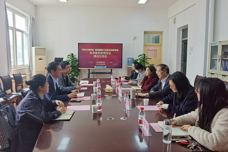 4月6日下午,经济管理学院院长严长远、办公室主任李志春、教学科长徐松和智慧健康养老服务与管理专业负责人谈笑一行4人就智慧健康养老服务与管理专业建设赴西安文理学院交流。西安文理学院经济管理学院院长刘鸿明、党总支书记杨燕华、副院长董冠华及养老服务与管理专业教师等热情接待。