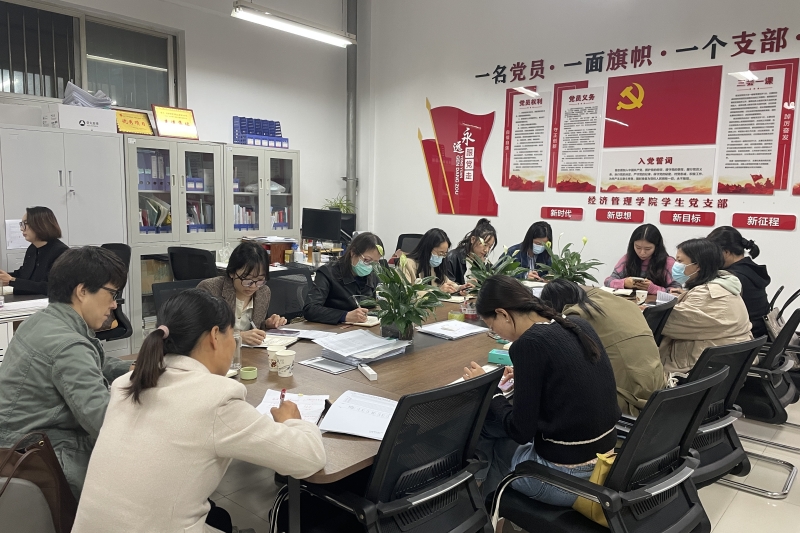 为进一步加强我院辅导员队伍建设,提升辅导员的理论水平、业务能力和岗位任职能力,夯实辅导员主动防范保学生安全的政治责任,遏制和防范学生安全事故的发生,10月29日,经济管理学院组织全体辅导员进行理论学习并研讨交流,会议由闫应召主持,党总支书记王文雅参加会议。