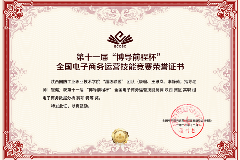 由黄志宏教师指导,郭蕾蕾、韩雨欣、张琛团队获得电子商务运营赛项特等奖并入围全国总决赛;崔健教师指导,康瑜、王思岚、李静茹团队获得电子商务数据分析赛项特等奖并入围全国总决赛;谢雅儒教师指导,李梦丽、何雯蕊、程思豫团队获得跨境电子商务运营赛项一等奖。