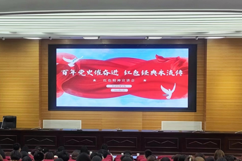 为推动学习贯彻习近平新时代中国特色社会主义思想走深走实,进一步引导学生干部队伍继承和弘扬革命先辈的光荣传统和优良作风,经济管理学院于2024年5月15日下午在敏学楼学术报告厅举办“百年党史催奋进 红色精神永流传”红色主题教育宣讲会。马克思主义学院教师王玉辉、王云莉、王琳、张昭、曹婉蓉及经济管理学院四百余名学生干部及学生代表参加宣讲会,闫应召主持会议。